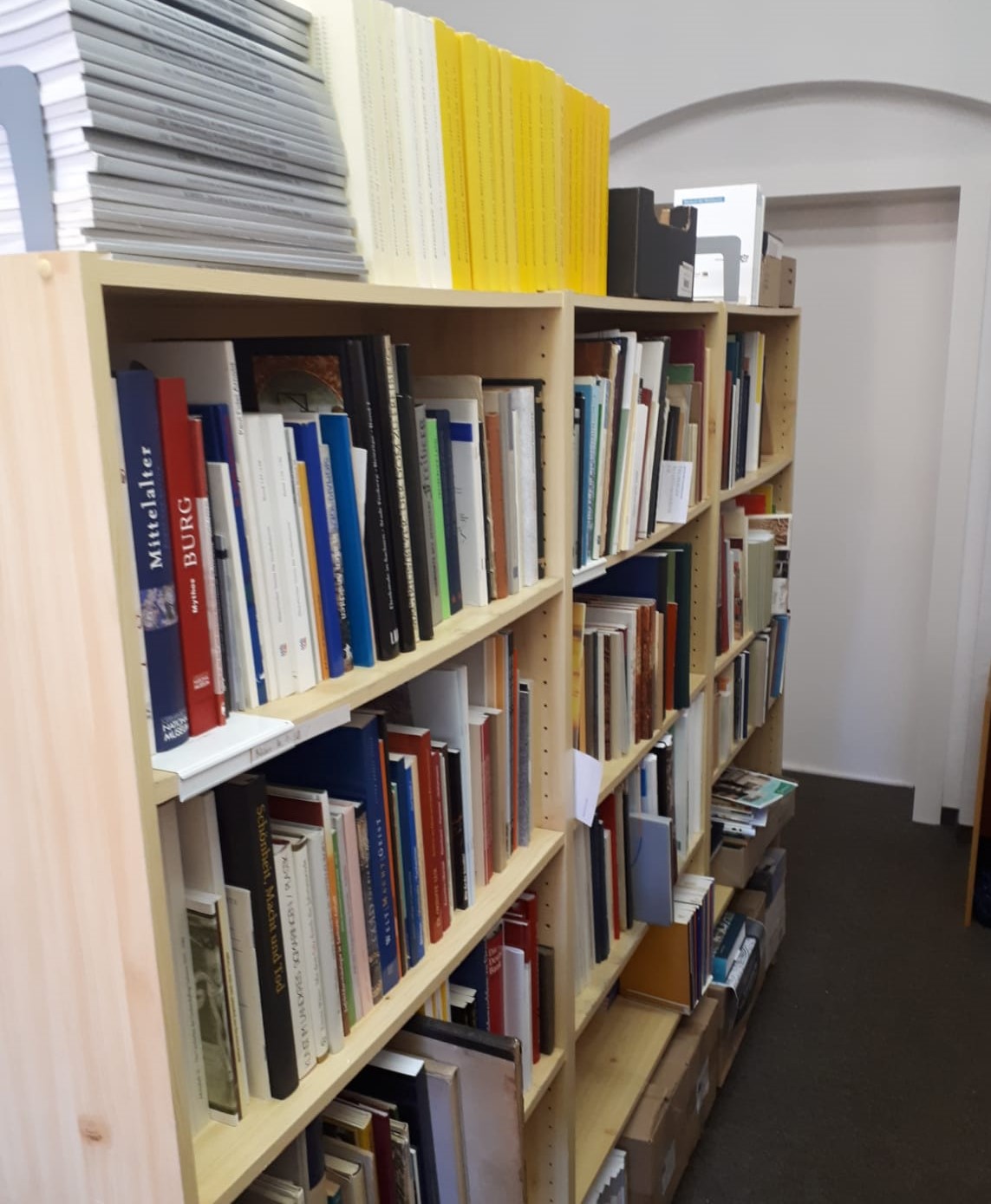| Seit der Wiedergründung des Freiberger Altertumsvereins e.V. im Jahre 1990 entsteht eine 'neue' Vereinsbibliothek. Besonders durch den Schriftentausch mit anderen Vereinen und Institutionen aber auch durch Schenkungen wuchs der Bestand stetig an. Der Verein ist gegenwärtig dabei, die vorhandenen Publikationen zu katalogisieren. Nach Fertigstellung ist es geplant, den Bestand auf dieser Seite zu veröffentlichen. In begrenztem Rahmen können die Bücher und Hefte entliehen werden. | ![]() |
